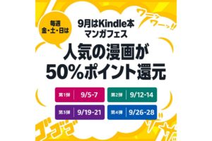 9月の毎週末はKindle本マンガフェス!金・土・日 50%ポイント還元セール